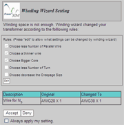 Finally, user can press "Accept" to use this suggested transformer or press "Deny" to roll back to use the original transformer. The "Always apply my setting" checkbox can force the winding wizard to remember user's setting without any more prompt.