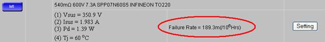 The "Simulated Overall Failure Rate" means how many time the system will fail under 1 million hours, "Simulated Overall MTBF" means the average time between failure. The "Simulated Overall Life Time" means the life time of component having minimum life time. E-Cap and opto-coupler are considered to have life time issue.