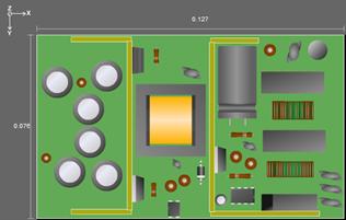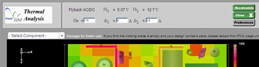 Thermal analysis is a tool to let user to place component, PCB, heatsink, etc. and enter the losses of each component. With just a click and wait for a few second the thermal result will be displayed. User can treat it as a standalone tool to estimate the thermal behaviors of any product. If a power supply has initialized, all the component with its corresponding losses of the power supply will be automatically transfer and synchronous to the thermal analysis tool.