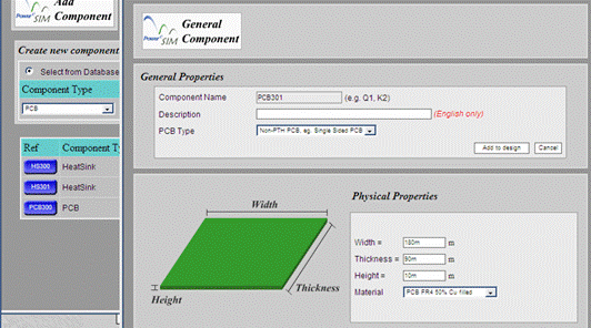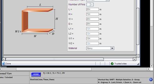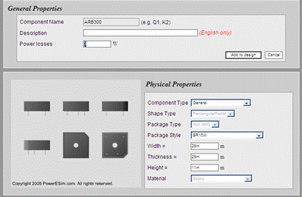 added parts, you can set their power losses. Heat sink and PCB are not allowed